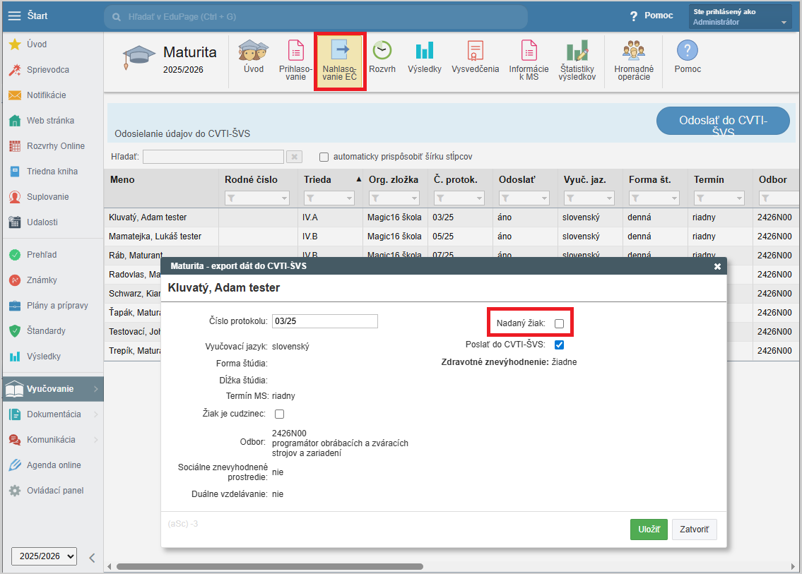 V časti Nahlasovanie EČ si kliknite na daného maturanta - otvoríte si jeho detaily.