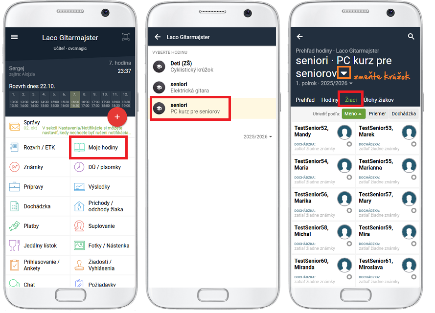Ako najrýchlejšie zistím zoznam žiakov v mojom krúžku?