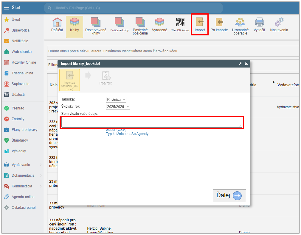 Ako naimportovať knihy do knižnice/skladu učebníc?