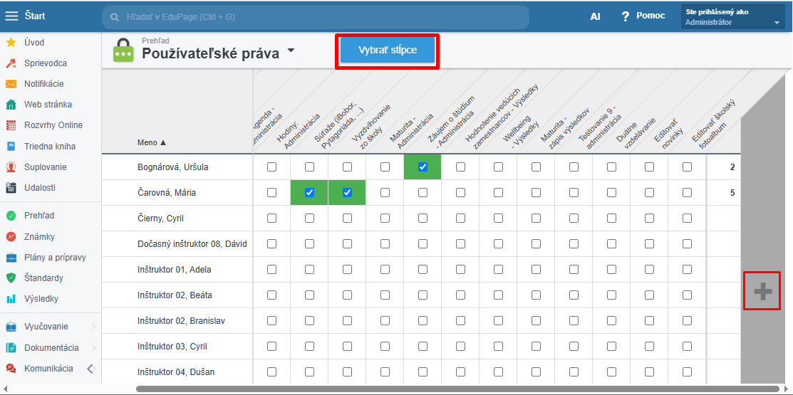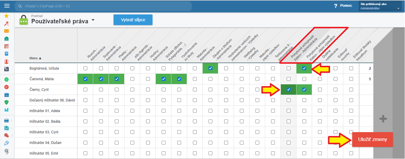 Vašim učiteľom viete prideliť dva druhy používateľských práv pre prácu v tomto module .