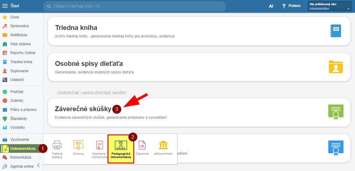 V tejto sekcii môžete evidovať jazykové skúšky, zadávať hodnotenia a generovať potrebné protokoly a vysvedčenia.