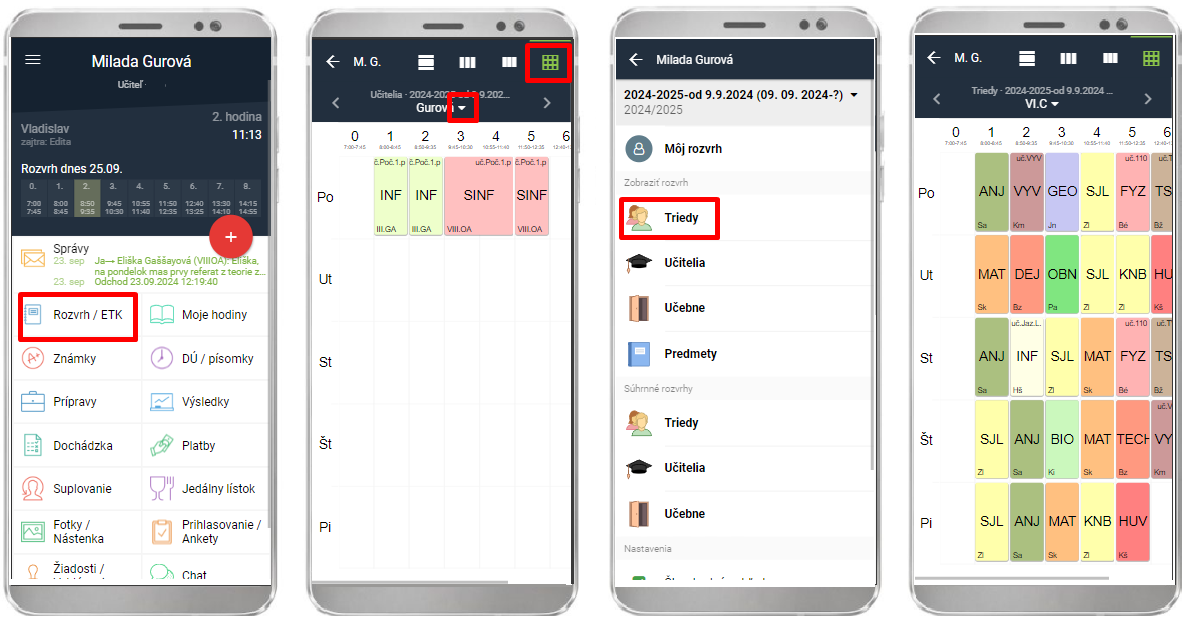 Ako si v mobilnej aplikácii pozriem rozvrh tried?
