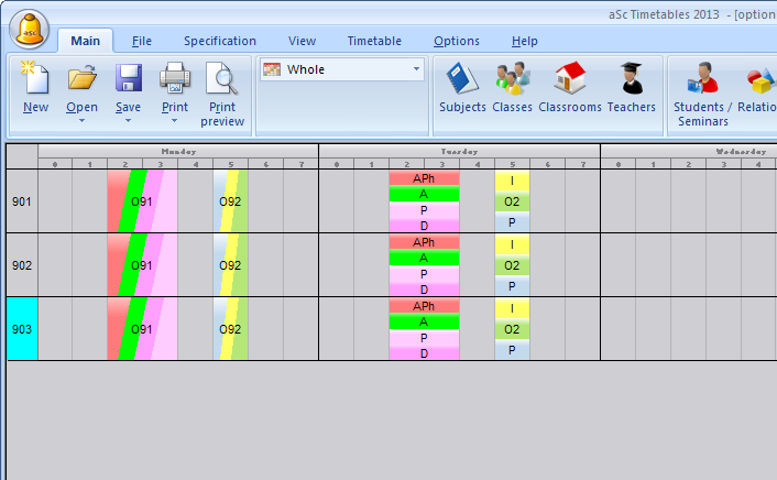 Това решение отнема повече време за въвеждане, но има няколко преимущества. Първо, в разпечатките е ясно кой учител кой учебен предмет преподава и в коя класна стая; второ, ако използвате Софтуера за заместване, и ако определен учител отсъства, софтуерът знае какво и къде трябва да бъде заместено.