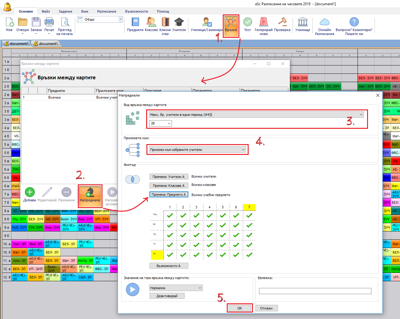 Ако разполагате с 30 учители във вашето училище и желаете да сте сигурни, че винаги има 2 свободни учители, сложете в един учебен час максимум 28-ма учители.