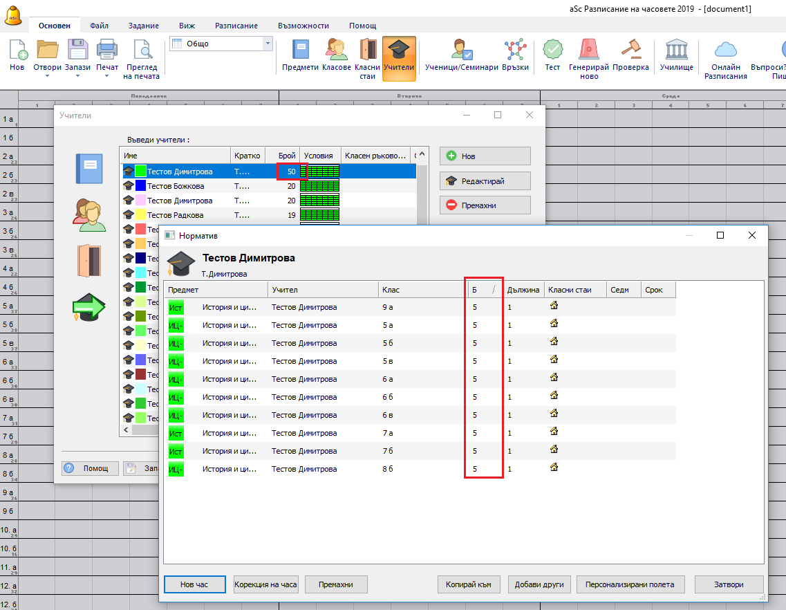 Понякога може да се случи, да сте определили повече часове на седмица на един учител/класна стая или клас, отколкото позиции на седмица имате в действителност.