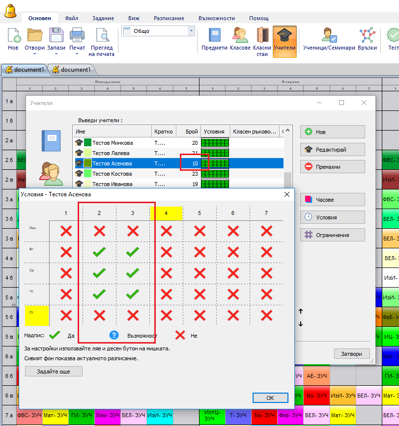 Не забравяйте да проверите времето за отсъствие - учителят може да има 10 часа, но само 5 свободни периода на седмица: