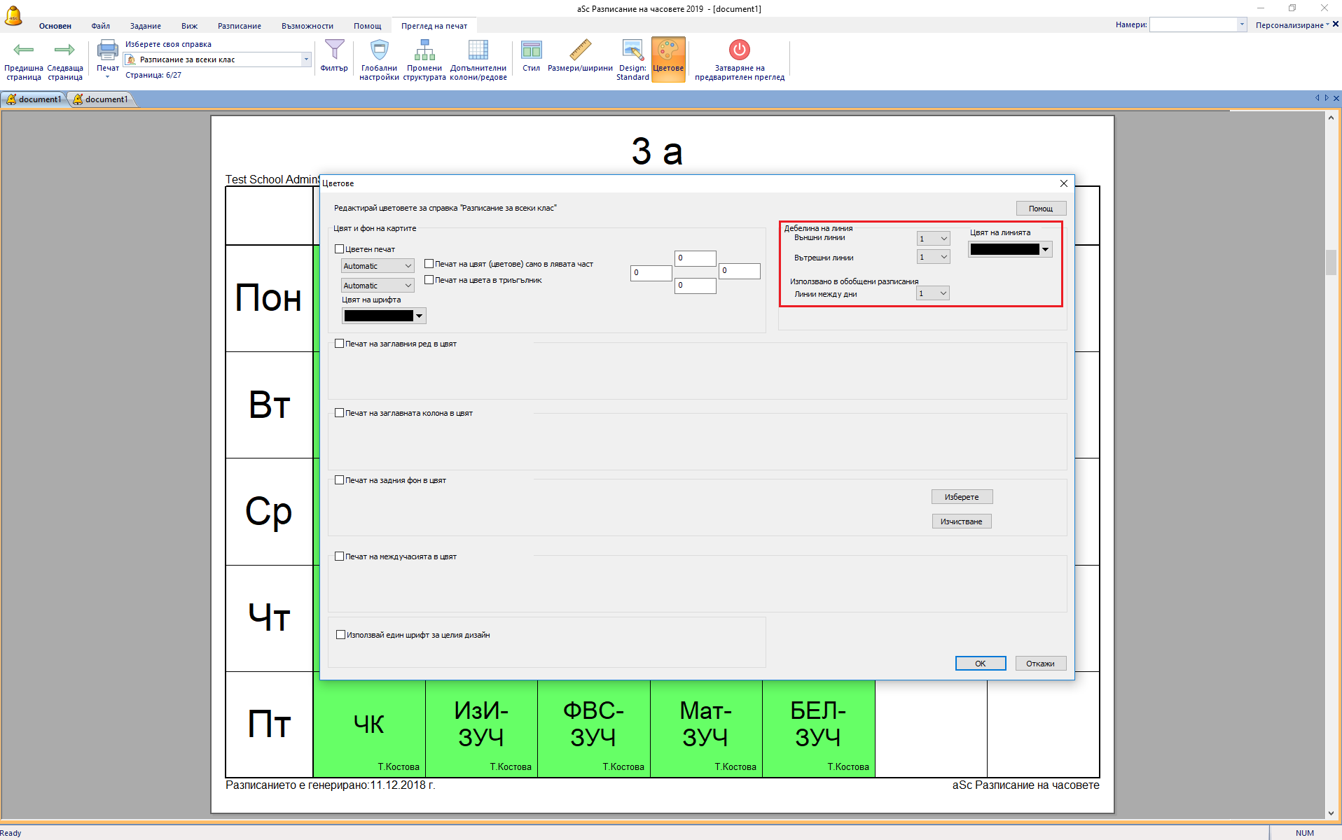 След това цъкнете върху заглавната част на разписанието. Появява се диалогова кутия, където можете да въведете ширината на редовете: