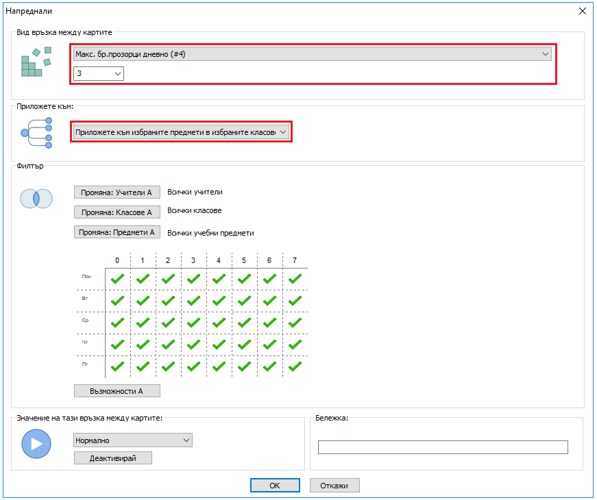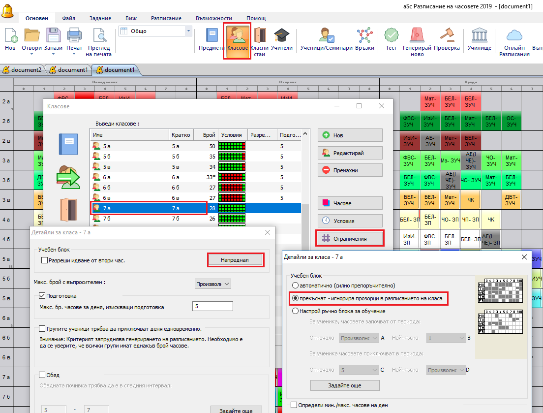 Тази функция работи най-добре във PRO версия, защото, ако софтуерът може да мести ученици между паралелни секции на същия предмет, е по-лесно да се изпълнява това условие. В стандартната версия софтуерът премества само картите около ученици, които са фиксирани към техните секции.