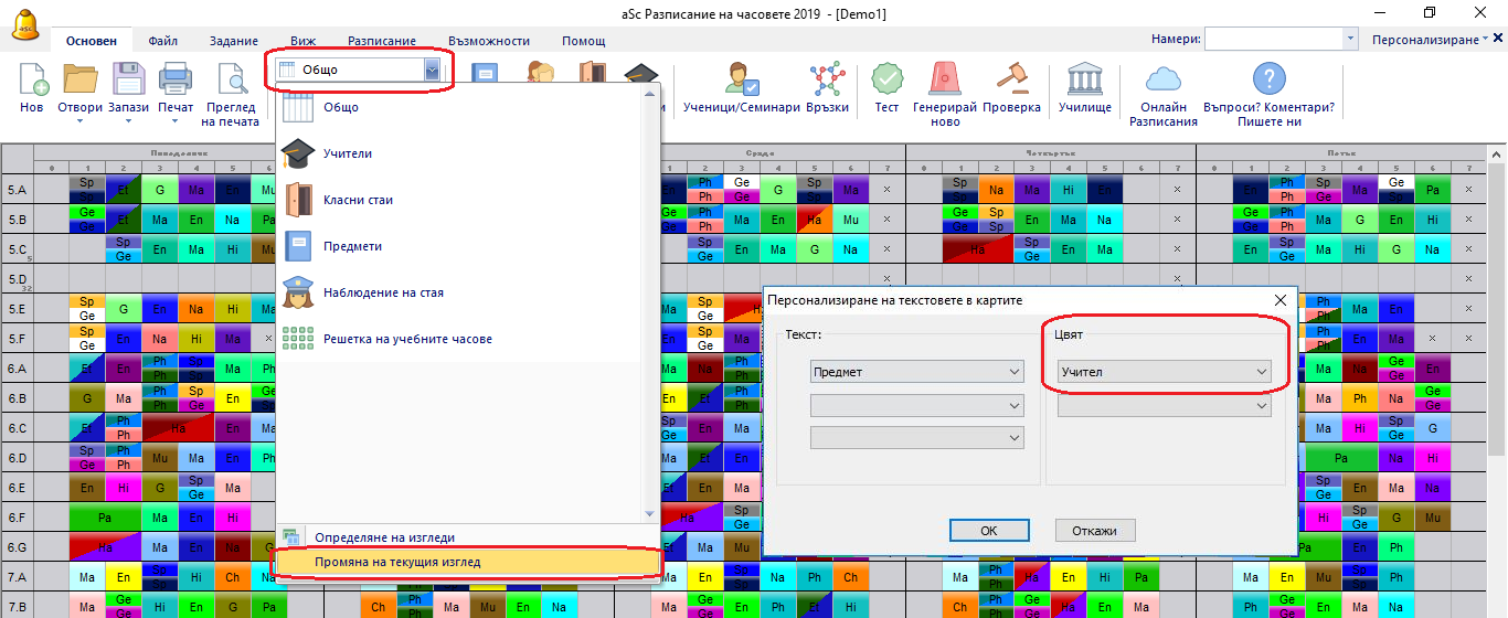 Mоже също така да промените текстовете, които ще се показват на екрана. В някои случаи Вие желаете да виждате учител, а не класна стая, и др.
