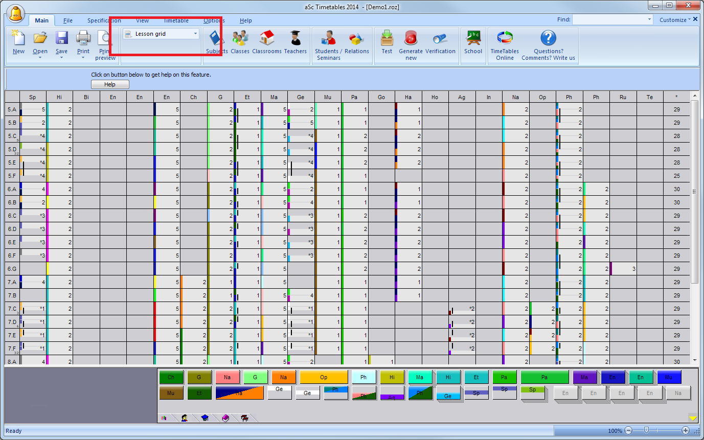 El plan de estudios le muestra todas las lecciones en su escuela en una sola pantalla. También puede añadir o modificar lecciones desde aquí: