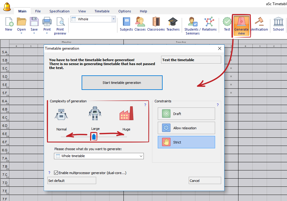 Para muchas escuelas esta opción encontrará un horario bueno y no necesitarán usar generaciones más complejas y generalmente más lentas.
