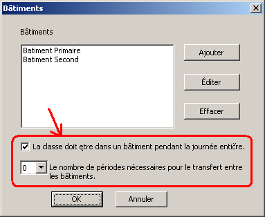 1) Que les étudiants de classe ne peuvent pas transférer entre les bâtiments pendant le jour (ceci est typique).