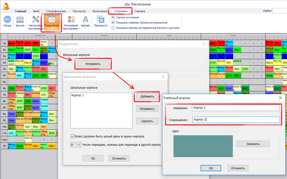 Показать расписание в красках здания