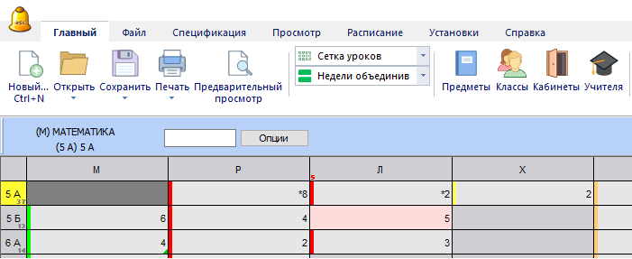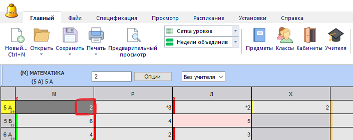 2. Напечатайте число уроков в неделю в выбранную ячейку: