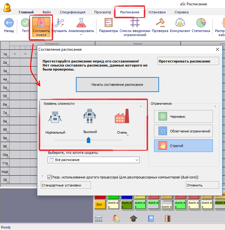 Что означает сложность составления расписания (уровни сложности)?