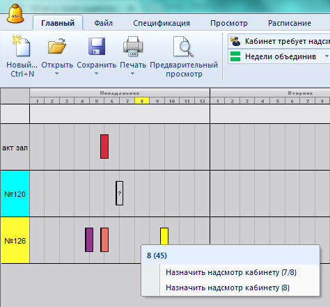 - просмотр "Надсмотра" виден только когда Вы определили некоторые кабинеты, которым нужен надсмотр.