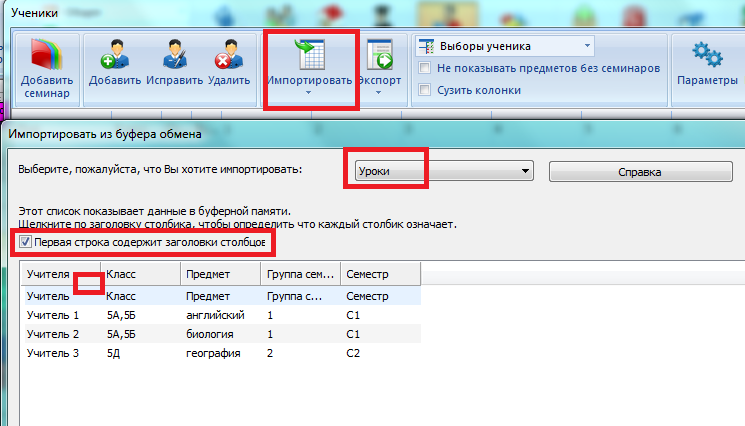 Импортировать выборы учеников (семинары) из буфера обмена (Excel) - Метод 1