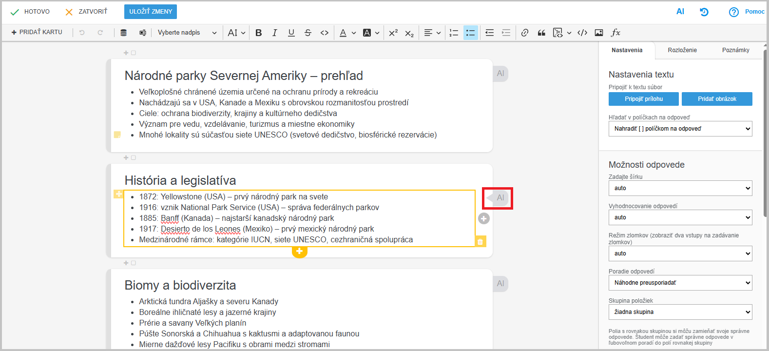 Kliknite "Editovať karty". Pri každej karte prezentácie vidíte ikonu "AI".