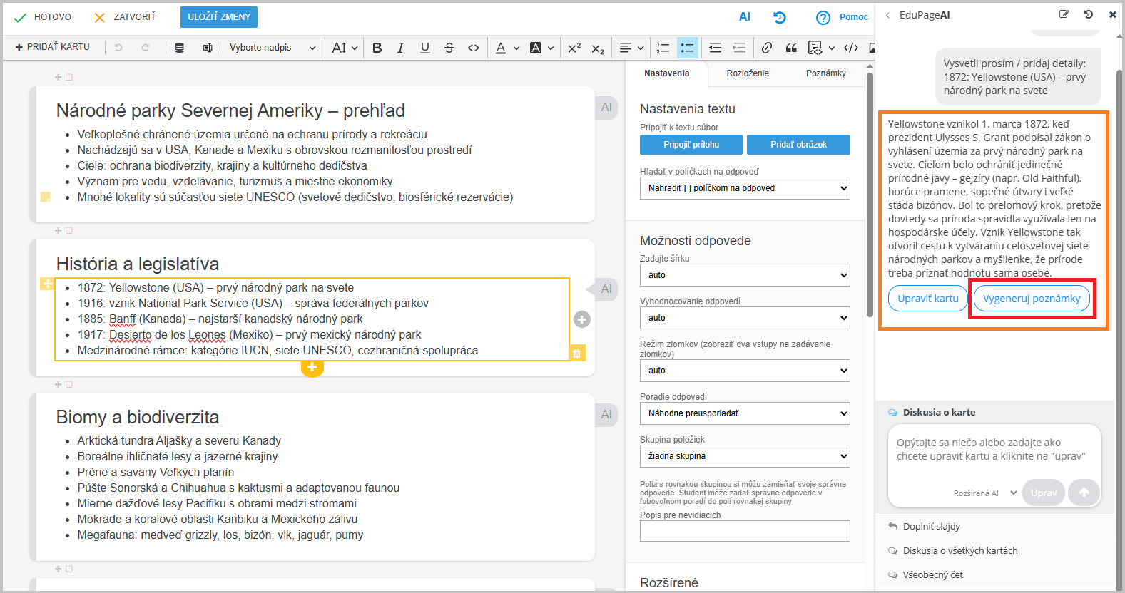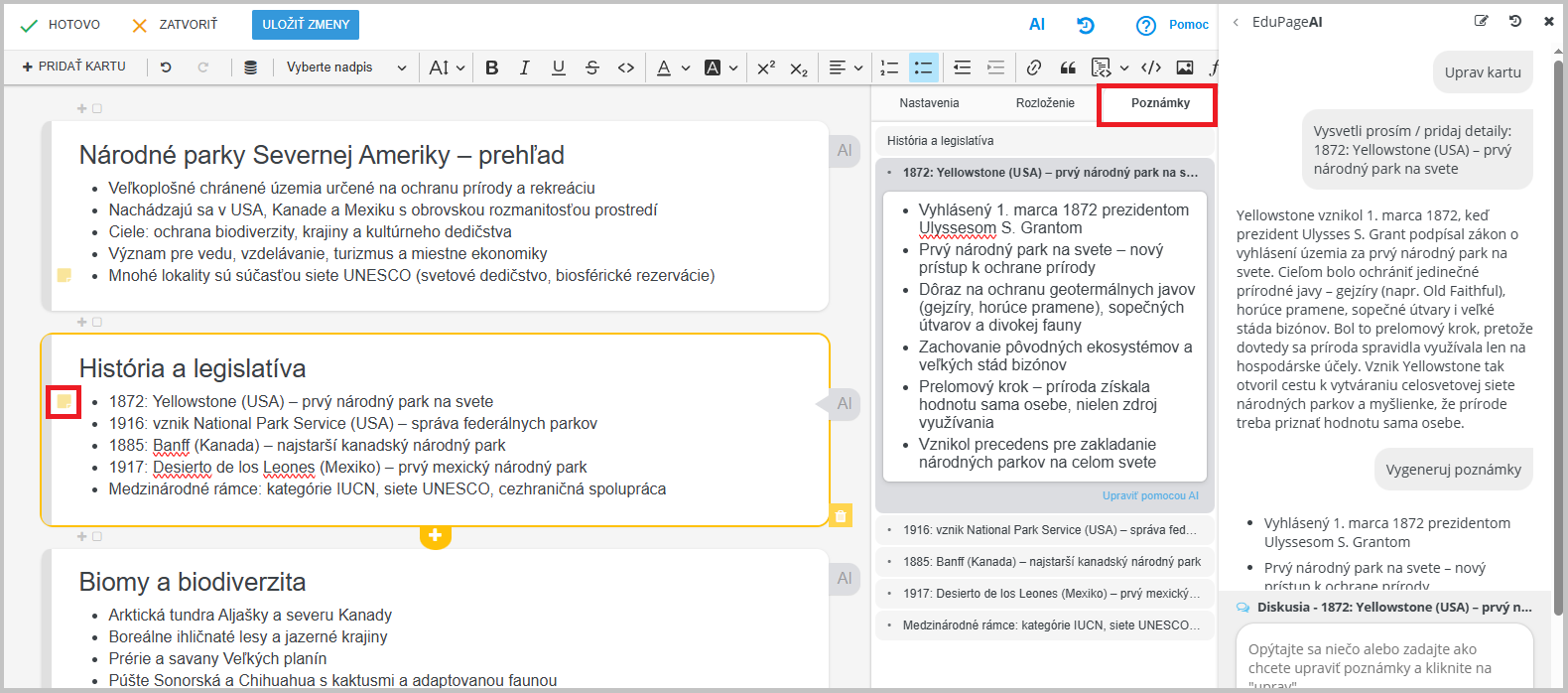 Ku každému bodu na karte si môžete od EduPage AI nechať vygenerovať podrobnejšie informácie.