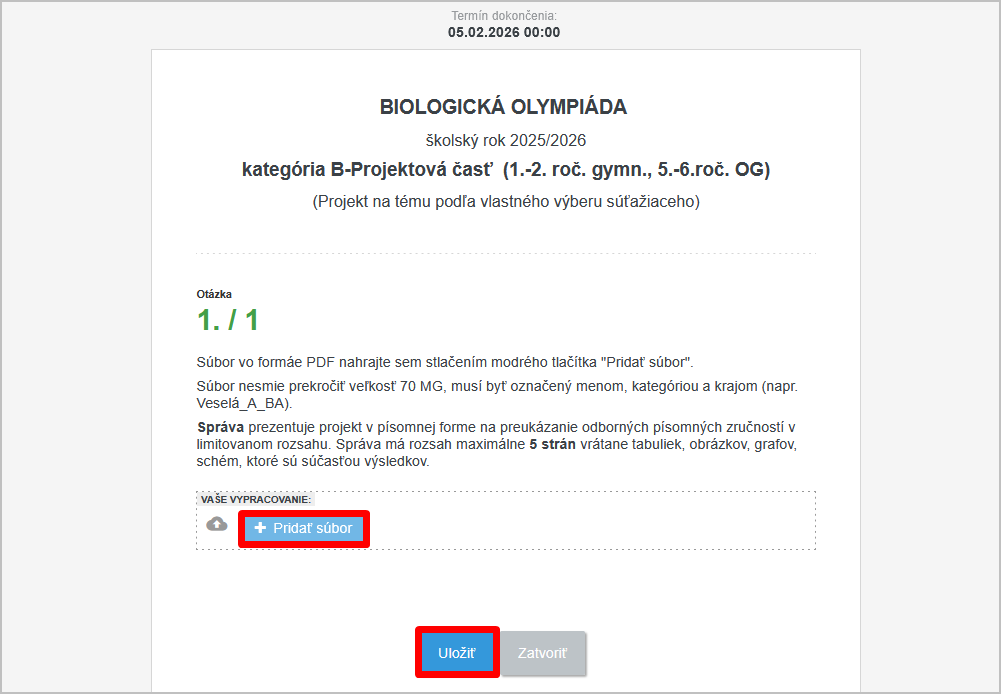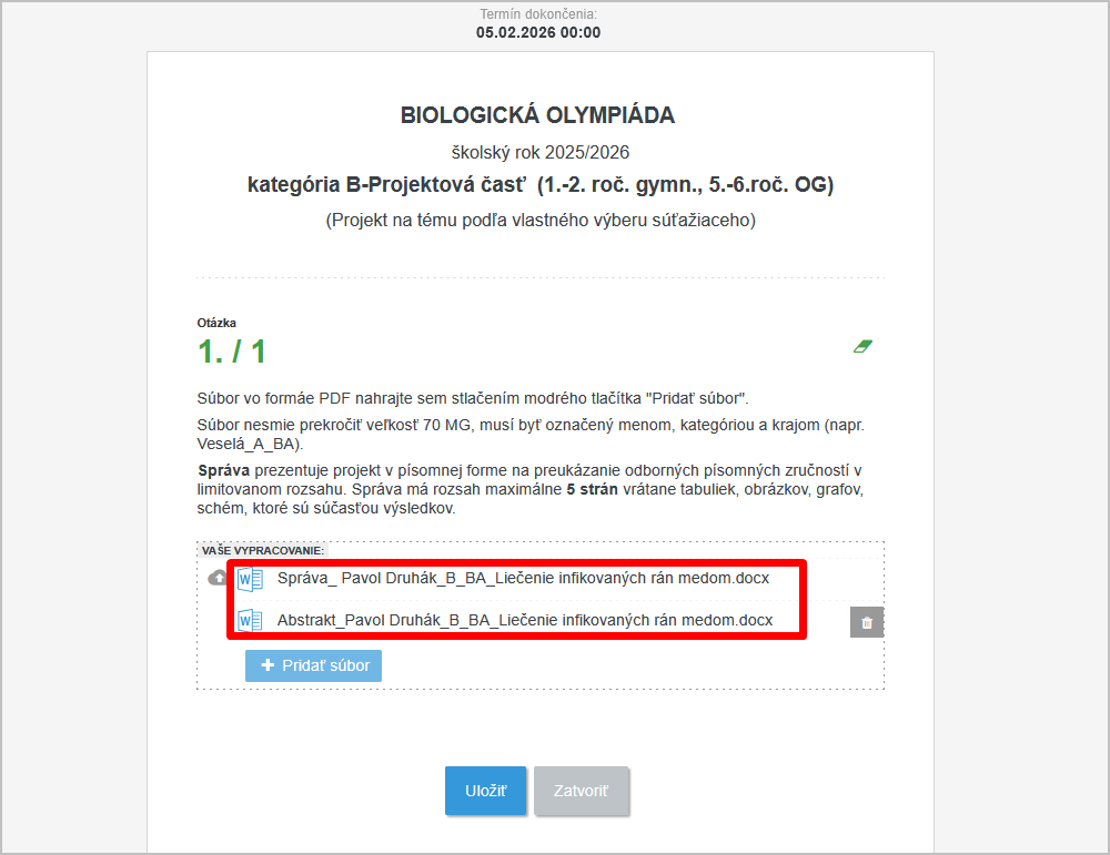 Ako nahrám súťažné materiály pri registrácii žiaka do projektovej časti Biologickej olympiády?