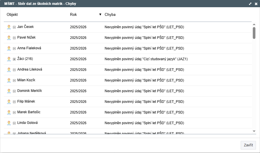 toto je kontrola u nás v EduPage, potom po nahraní dát do MŠMT sa ešte môže vyskytnúť zopár iných chýb.