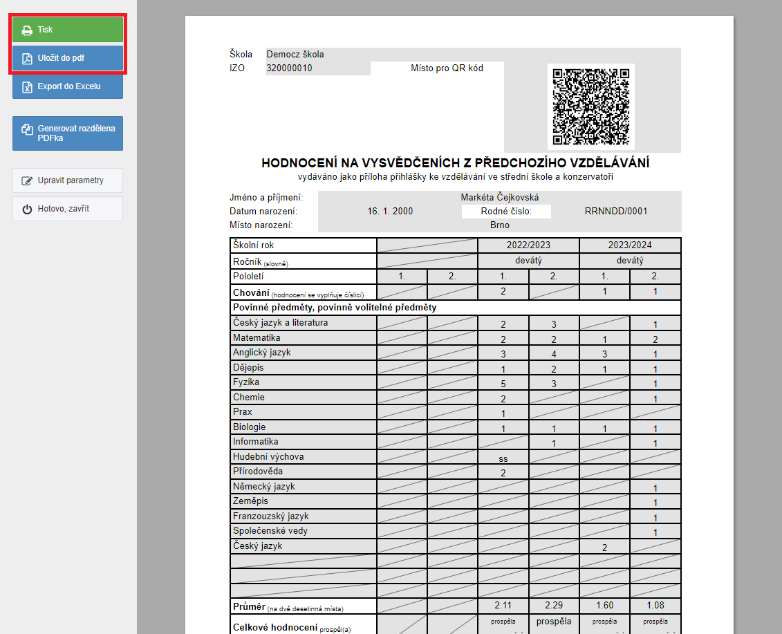 Tyto dokumenty pak můžete standardně zveřejnit žákům a rodičům stejně jako vysvědčení.
