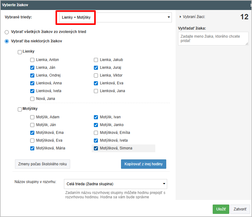 V tomto návode si ukážeme, ako zadať situáciu, ak doobeda majú triedy vyučovanie zvlášť a poobede sa deti z dvoch tried spájajú do zbernej triedy.
