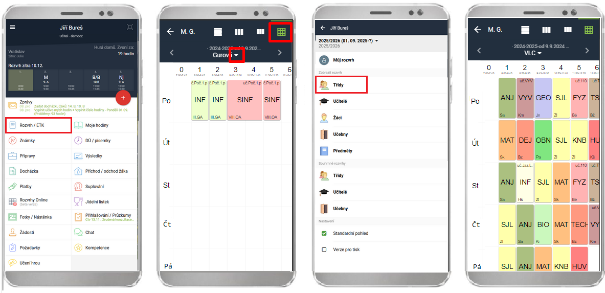 Jak si v mobilní aplikaci zobrazím rozvrh tříd?