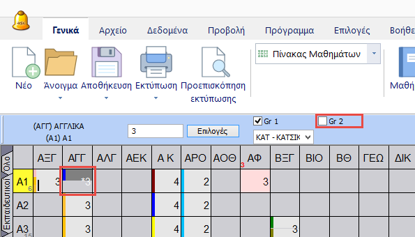 1. Επιλέξτε το μάθημα και το τμήμα κάνοντας κλικ στο αντίστοιχο κελί. Πληκτρολογήστε 3 για το πλήθος των διδασκαλιών ανά εβδομάδα. Μετά κάντε δεξί-κλικ στην διδασκαλία και επιλέξτε την Κατηγορία.