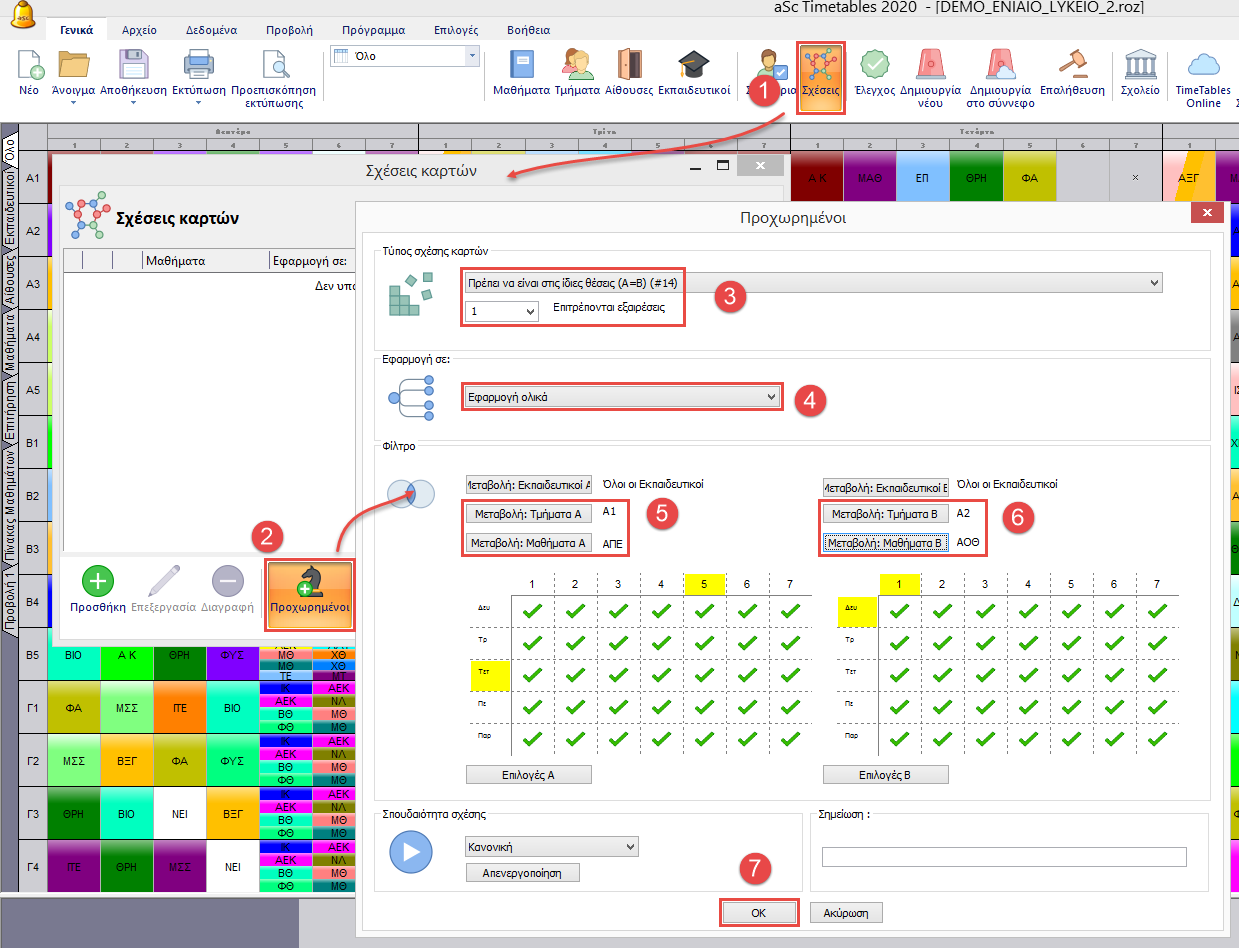 Ερώτηση: Θέλω να έχω διδασκαλίες μαθηματικών στο τμήμα Α στις ίδιες θέσεις με το τμήμα Β.