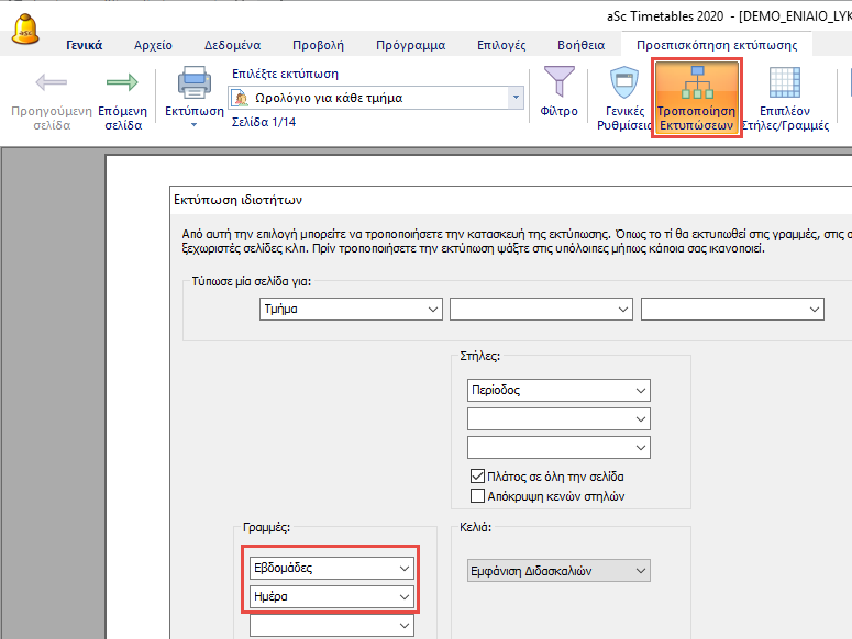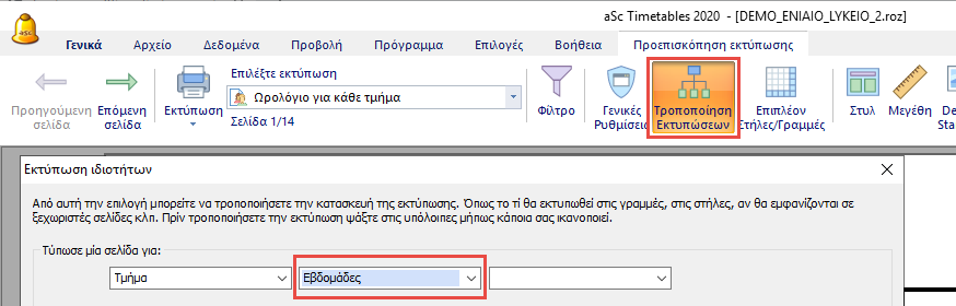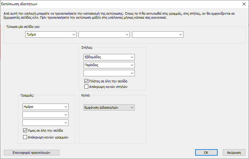 Εκτύπωση εβδομαδιαίων ωρολογίων