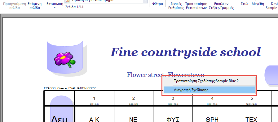 Εάν δεν σας αρέσει η επιλεγμένη σχεδίαση, μπορείτε απλά να κάνετε δεξί-κλικ στην Προεπισκόπηση εκτύπωσης και να επιλέξετε Διαγραφή Σχεδίασης. Από εδώ και πέρα η επιλεγμένη εκτύπωση θα εμφανίζεται χωρίς ειδική σχεδίαση.