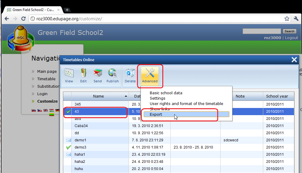 Συνδεθείτε στην ιστοσελίδα το οnline ωρολόγιο πρόγραμμα και κάντε κλικ στο κουμπί "Διαχείριση" Στο νέο παράθυρο που θα εμφανιστεί επιλέξτε το ωρολόγιο πρόγραμμα που επιθυμείτε, κάντε κλικ στο μενού "Προχωρημένοι" και στην συνέχεια επιλέξτε "Εξαγωγή".